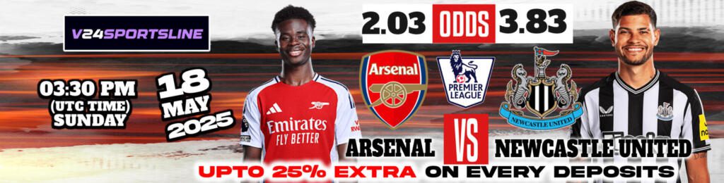 নিউক্যাসল, এডি হাউয়ের নেতৃত্বে, প্রিমিয়ার লিগে ৩য় স্থানে রয়েছে, ৩৫ ম্যাচে ৬০ পয়েন্ট নিয়ে, চ্যাম্পিয়ন্স লিগ কোয়ালিফিকেশনের জন্য লড়াই করছে। তাদের ফর্ম দুর্দান্ত ছিল, তবে সাম্প্রতিক দুটি হোম ম্যাচে হার (ফুলহ্যাম এবং বournemouth-এর কাছে) তাদের গতি কিছুটা কমিয়েছে। অ্যাওয়ে ম্যাচে তারা শক্তিশালী, ১৭ ম্যাচে ৮টি জয় এবং গড়ে ১.৮২ পয়েন্ট/ম্যাচ। এই মৌসুমে তারা আর্সেনালের বিরুদ্ধে দুটি জয় পেয়েছে, যা তাদের আত্মবিশ্বাস বাড়াবে।