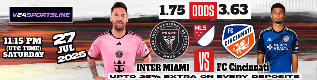 ২০২৫ এমএলএস মৌসুমে ইন্টার মায়ামি সিএফ ২৭ জুলাই চেজ স্টেডিয়ামে এফসি সিনসিনাটির মুখোমুখি হবে। জাভিয়ের মাসচেরানোর নেতৃত্বে মায়ামি (১২-৫-৪, ৪১ পয়েন্ট) ইস্টার্ন কনফারেন্সে ৫ম, যখন প্যাট নুনানের সিনসিনাটি (১৫-৩-৬, ৪৮ পয়েন্ট) ১ম স্থানে। ১৬ জুলাই ২০২৫-এ সিনসিনাটি টিকিউএল স্টেডিয়ামে ৩-০ জয় পায়, লিওনেল মেসির স্কোরিং স্ট্রিক থামিয়ে। ফ্যানরা মায়ামির মেসি (১৮ গোল, ১০ অ্যাসিস্ট) এবং লুইস সুয়ারেজের আক্রমণ নিয়ে উৎসাহী, যখন সিনসিনাটি সমর্থকরা এভান্ডার (১৫ গোল) এবং লুকা ওরেলানোর উপর ভরসা করছে। এই ম্যাচ ইস্টার্ন কনফারেন্সের শীর্ষে প্রভাব ফেলবে।