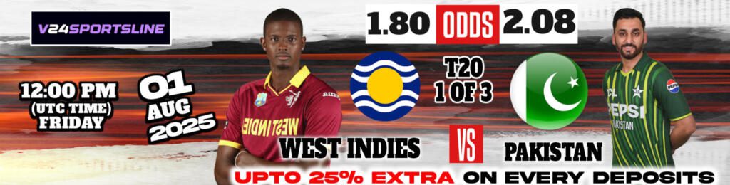 ২০২৫ পাকিস্তান সফরের প্রথম টি-টোয়েন্টিতে ওয়েস্ট ইন্ডিজ ১ আগস্ট লডারহিলে পাকিস্তানের মুখোমুখি হবে। নিকোলাস পুরানের নেতৃত্বে ওয়েস্ট ইন্ডিজ গত টি-টোয়েন্টি ট্রাই-সিরিজে (জুলাই ২০২৫) অস্ট্রেলিয়ার কাছে ১৭৭ রানে হারে (১৮ জুলাই), তবে শাই হোপ (৫৫) এবং রোভম্যান পাওয়েলের (৪০) ব্যাটিং আশা জাগায়। সালমান আলি আঘার নেতৃত্বে পাকিস্তান বাংলাদেশের বিপক্ষে ৮ উইকেটে জয় পায় (২৪ জুলাই ২০২৫), সালমান আঘা (৩৭.৫৭ গড়) এবং হারিস রউফ (৯ উইকেট) নেতৃত্বে। পাকিস্তানের বিপক্ষে ওয়েস্ট ইন্ডিজের টি-টোয়েন্টি রেকর্ড দুর্বল (১৬-৩, ২০২১ সিরিজে ৩-০ হার)। ফ্যানরা পুরানের আক্রমণাত্মক ব্যাটিং এবং শাহিন আফ্রিদির পেস নিয়ে উৎসাহী। এই ম্যাচ সিরিজের সুর নির্ধারণ করবে।